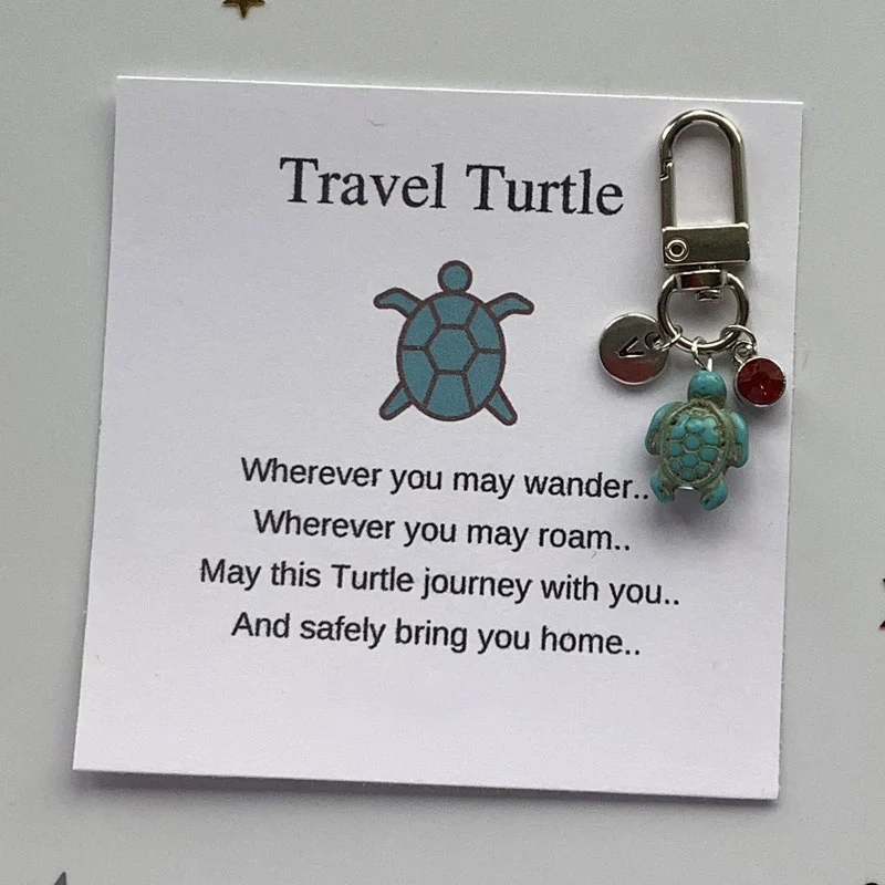 🥰This keychain/ bag charm comes attached to a card with a Travel turtle card and the verse.